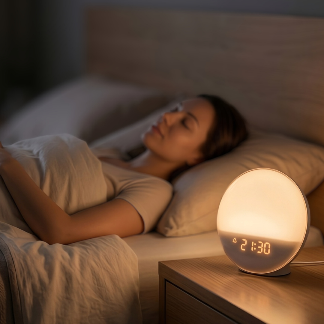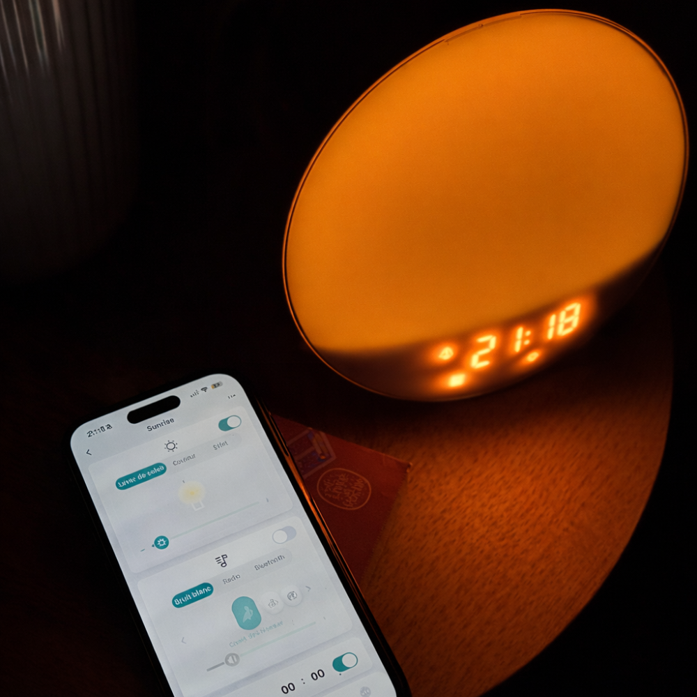 Coconrise accompagne les parents en rétablissant un rythme naturel grâce à la lumière du coucher et du lever du soleil, pour retrouver des nuits réparatrices et des matins plus doux.